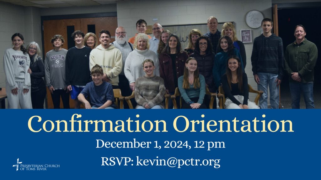 We invite prospective parents and students (8th grade and older) to join us for lunch and a mandatory Confirmation Orientation on December 1 at 12 pm as we unpack the vision for the 2025 confirmation experience and spend some time answering the question, “What is Confirmation?” Got questions or want to RSVP? Contact Kevin at [email protected] or call the office at 732-349-1331.